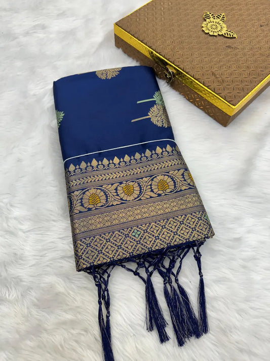 Royal Navy Blue Banarasi Silk Saree with Antique Gold Zari – Traditional Indian Wedding And Festive Wear