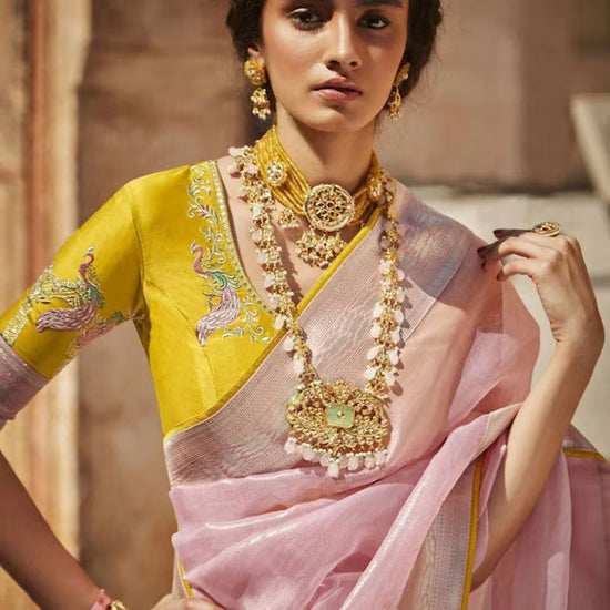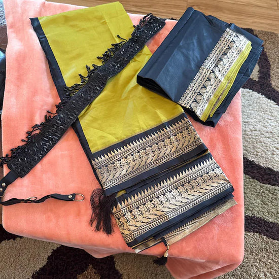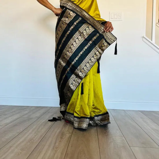 Discover the elegance of Indian tradition with our South Indian Methi Yellow Silk Saree. Perfect for bridesmaids, weddings, and festivities, this saree blends luxury and sophistication.