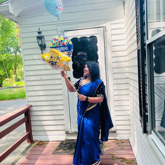 ⭐️⭐️⭐️⭐️⭐️Got this saree and blouse for my graduation. I wanted something good quality and light since this was an important day ...