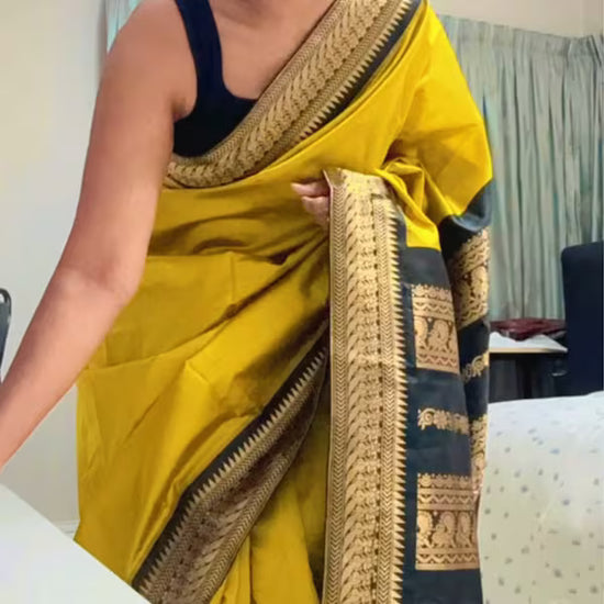 Methi Yellow South Indian Silk Saree – A Symbol of Tradition and Grace Adorned with Subtle Golden Hues for a Radiant Wedding Look